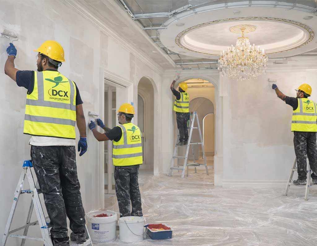 DCX delivers professional painting services across Dubai and the UAE, serving offices, villas, retail spaces, warehouses, and commercial buildings. Our team follows structured execution standards including surface preparation, crack repair, priming, and high-quality finishing to ensure long-lasting results and professional appearance.
