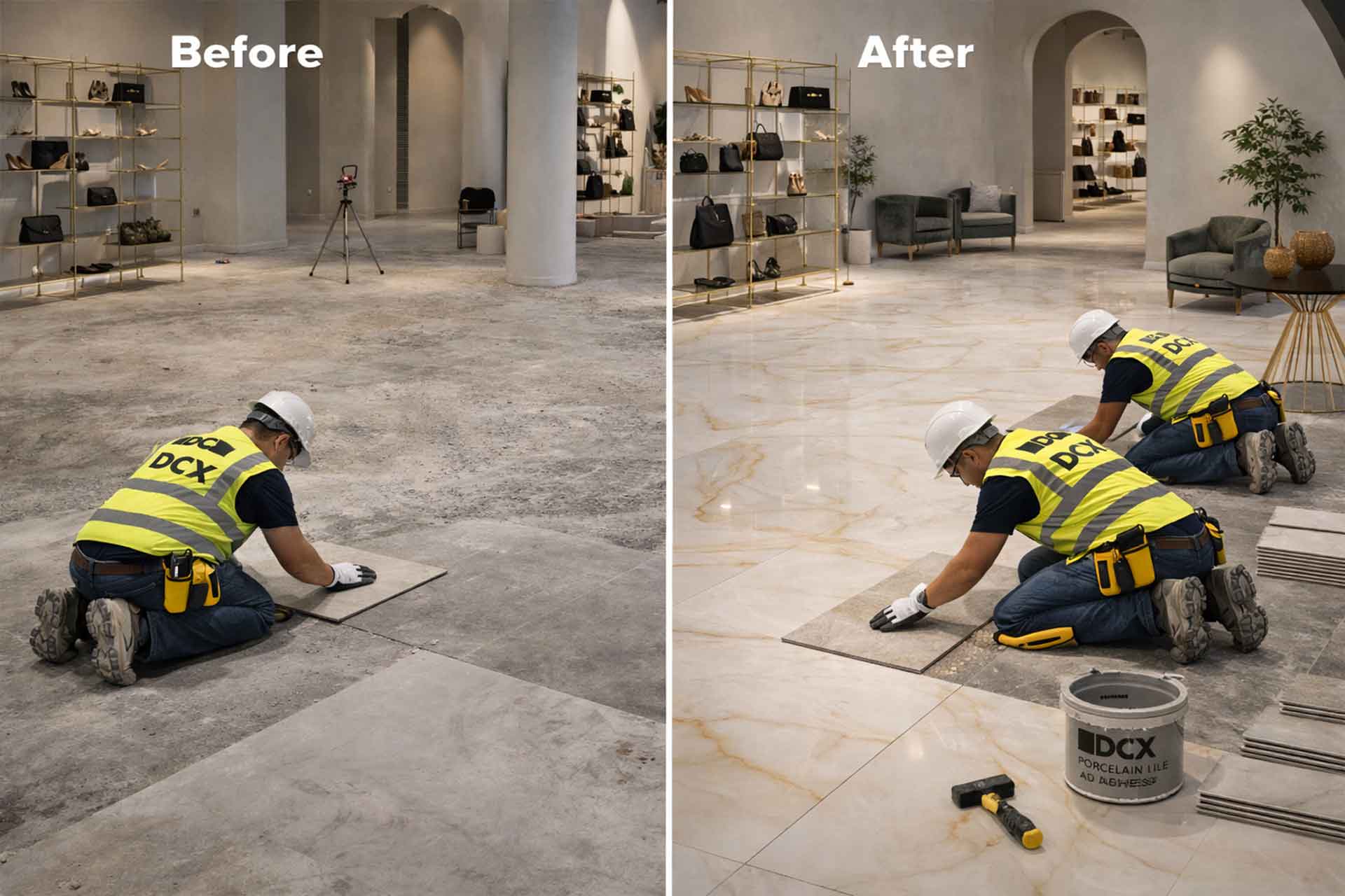 Porcelain installation requires technical expertise, surface control, and precision alignment. At DCX, we combine skilled workmanship with strict installation standards to deliver durable and flawless finishes.